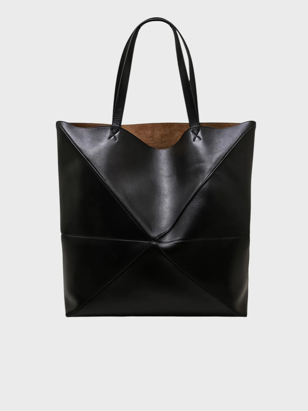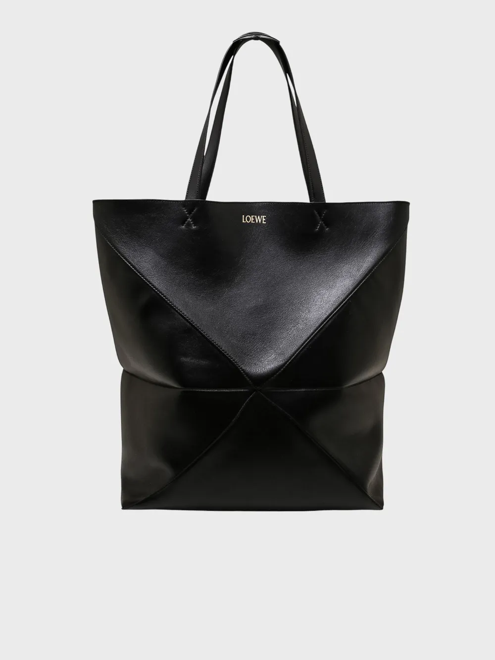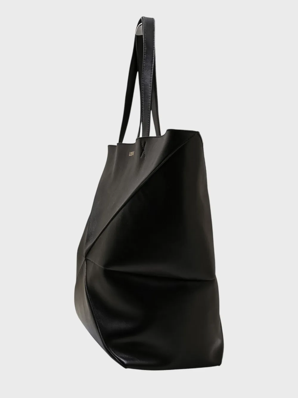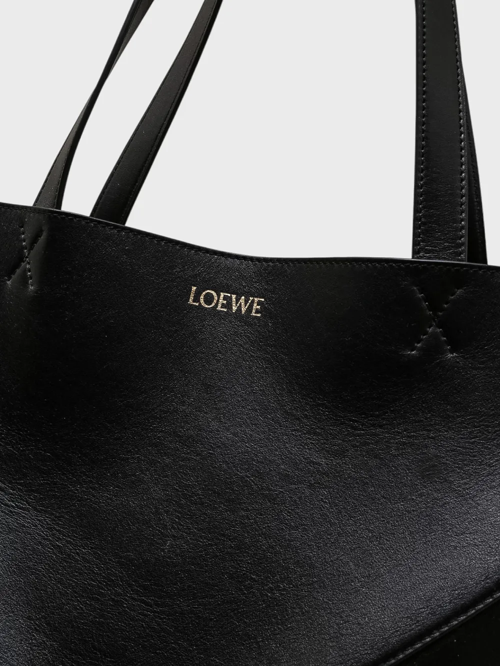 Сумка Loewe выполнена из качественной черной кожи с гладкой текстурой. Модель сочетает классический дизайн и современные детали: передняя застежка на молнию, удобные ручки для ношения через плечо или на руке. Особенностью сумки является оригинальная геометрическая отделка на лицевой стороне, которая создает динамичный и модный акцент. На внешней части сумки присутствует золотистый логотип бренда, добавляющий узнаваемости и стиля. Внутреннее пространство сумки достаточно вместительное, что делает ее идеальной для повседневного использования. Сочетание черного цвета и качественных материалов обеспечивает долговечность и элегантность изделия.