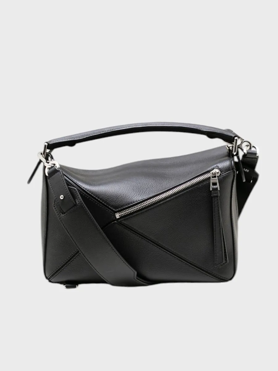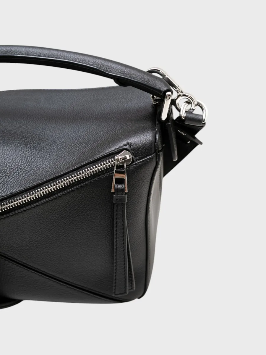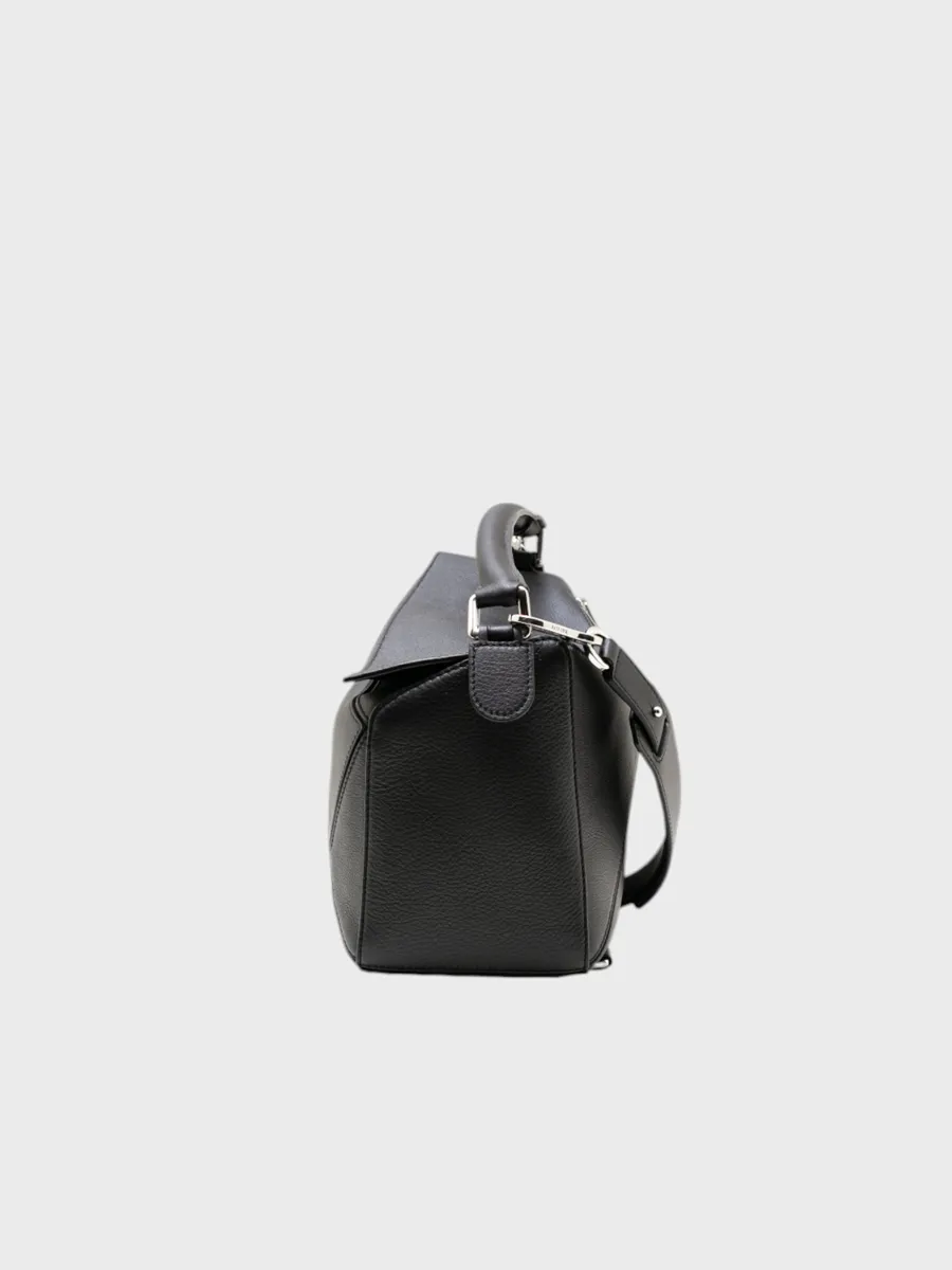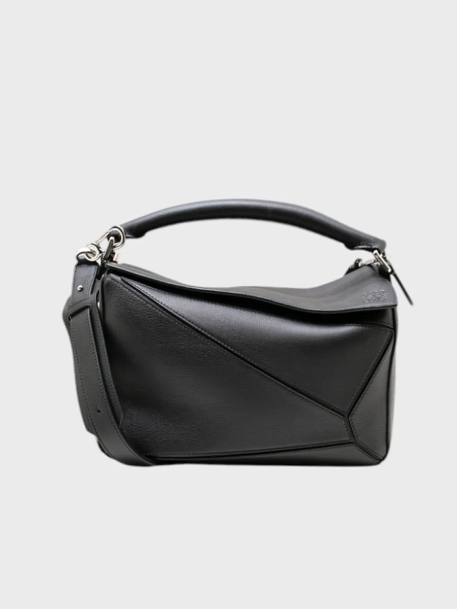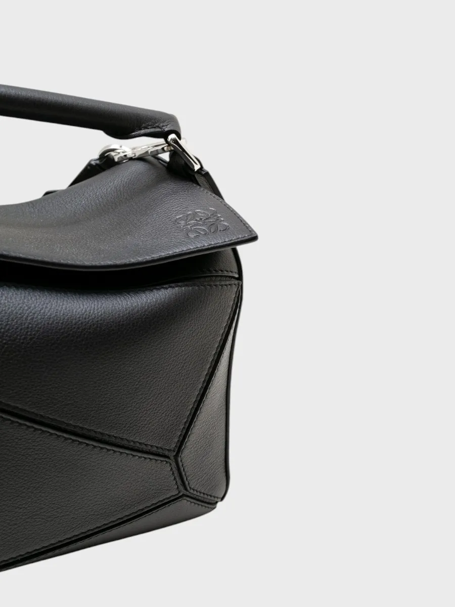 Сумка Loewe выполнена из черной кожи с текстурным рельефом, придающим ей современный и элегантный вид. Модель оснащена короткими кожаными ручками для удобного ношения на плече или в руке. Застежка-молния обеспечивает безопасное хранение вещей, а дополнительные карманы внутри увеличивают функциональность сумки. Фирменная эмблема бренда нанесена на внешнюю часть, подчеркивая высокое качество и премиальный статус аксессуара. Универсальный дизайн идеально сочетается как для повседневного использования, так и для деловых встреч.