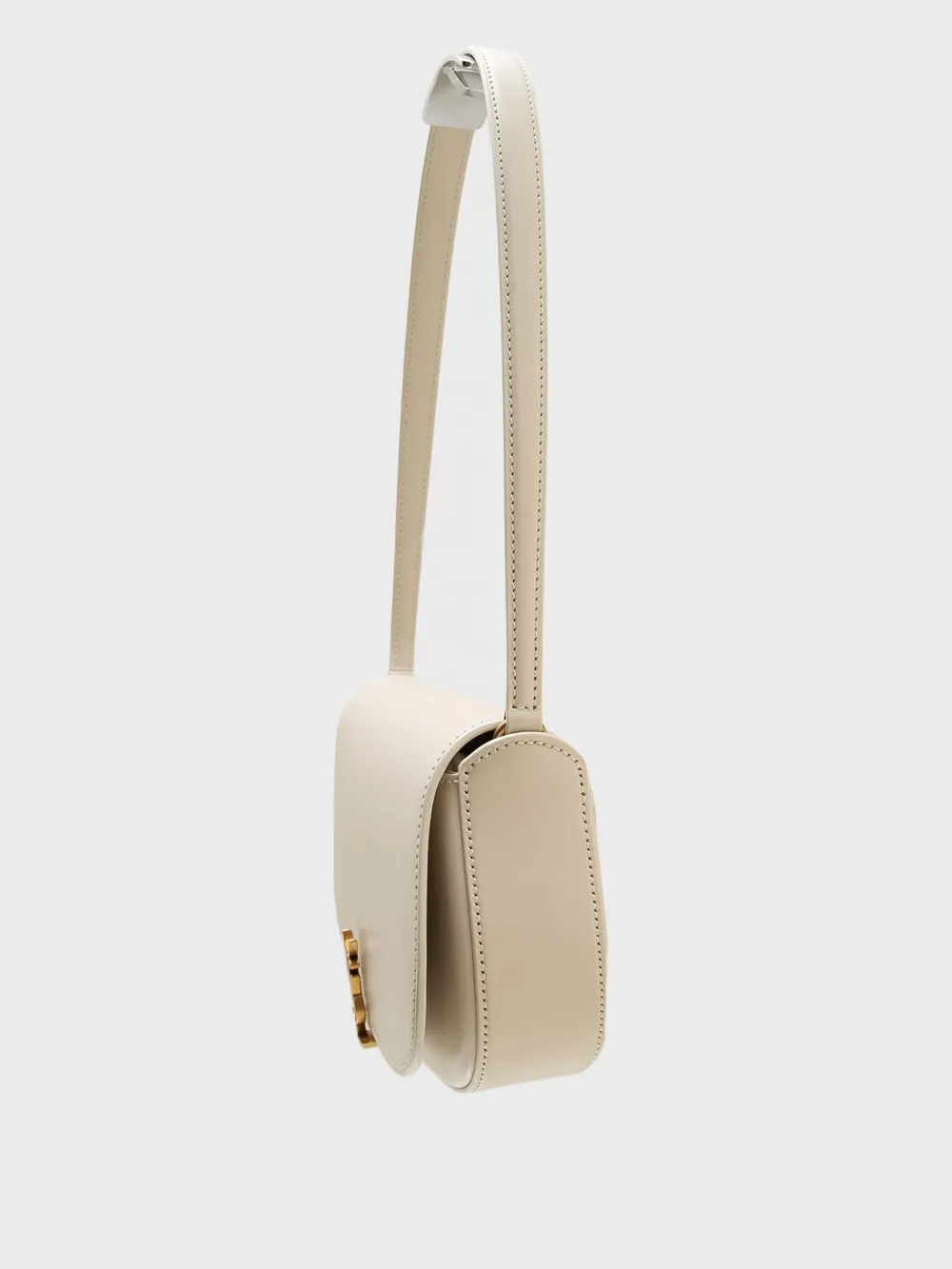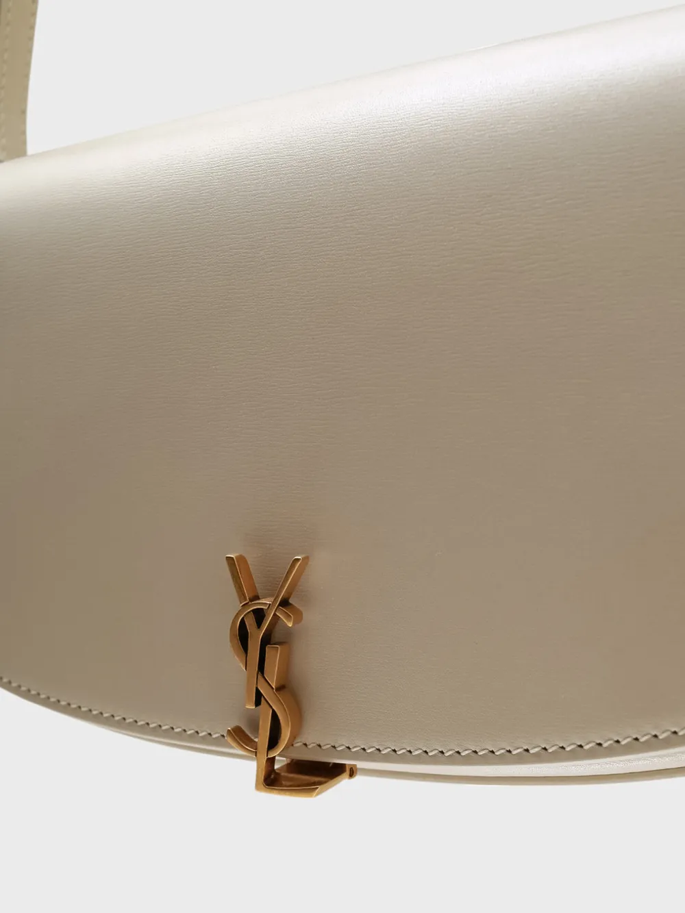 Сумка Saint Laurent выполнена из качественной белой кожи с гладкой фактурой и лаконичным дизайном. Модель дополнена короткой ручкой, металлическими деталями в золотистом цвете и фирменной эмблемой YSL на лицевой стороне. Простой силуэт и минималистичный стиль делают аксессуар универсальным для повседневного использования или вечерних выходов.