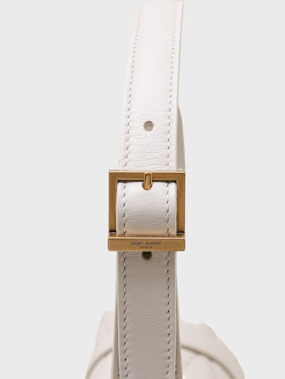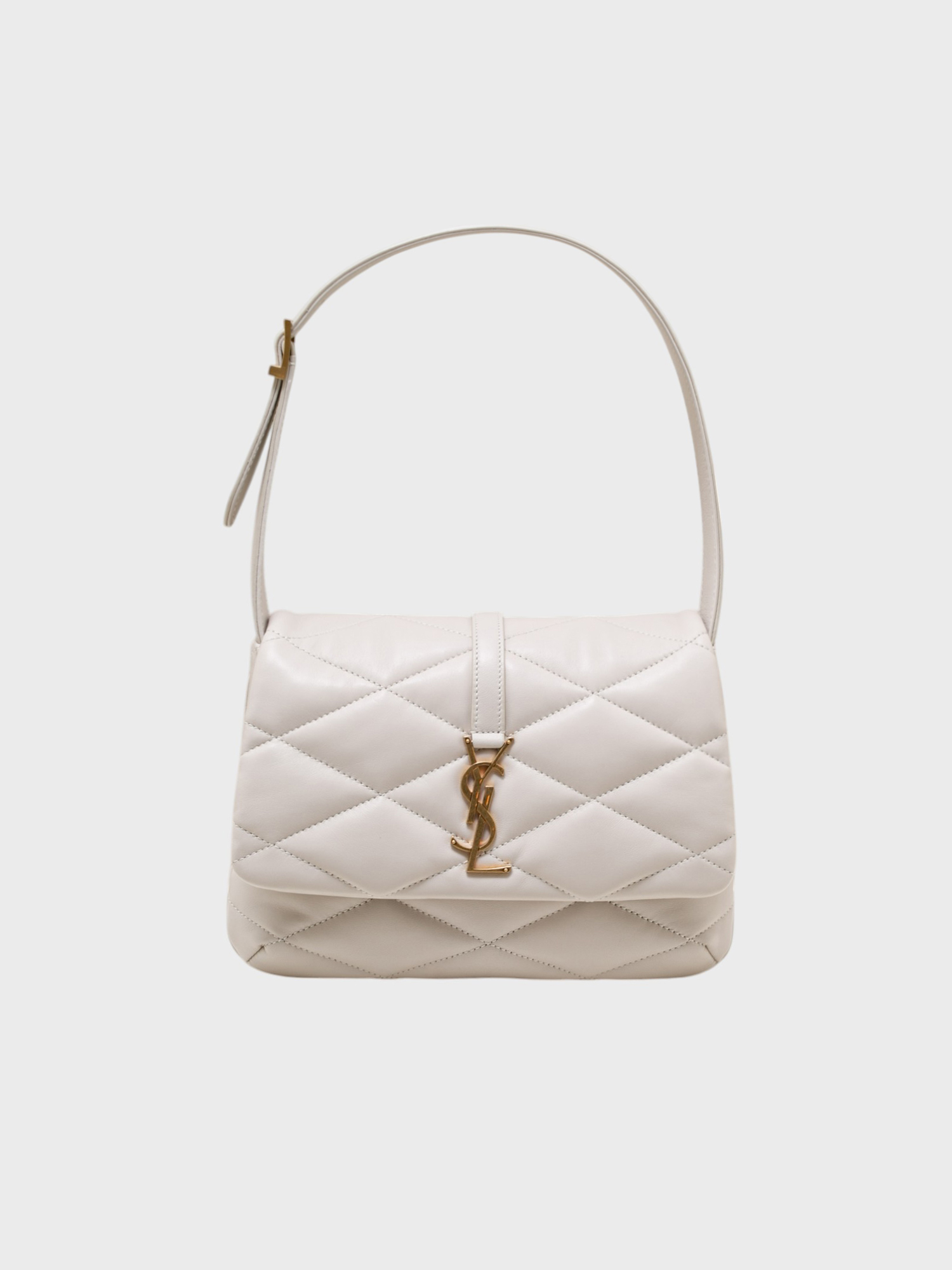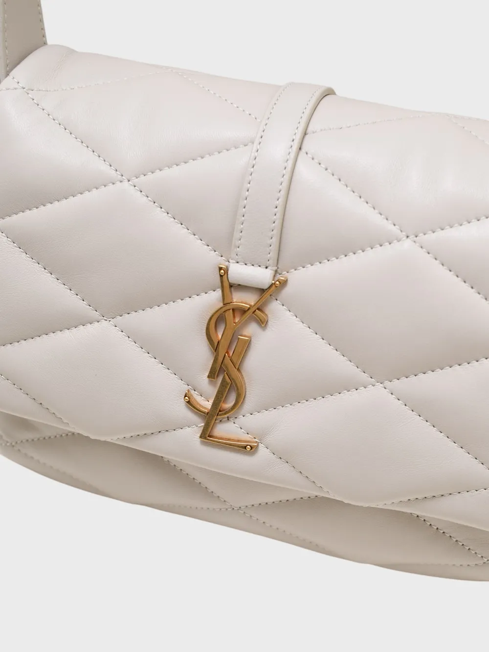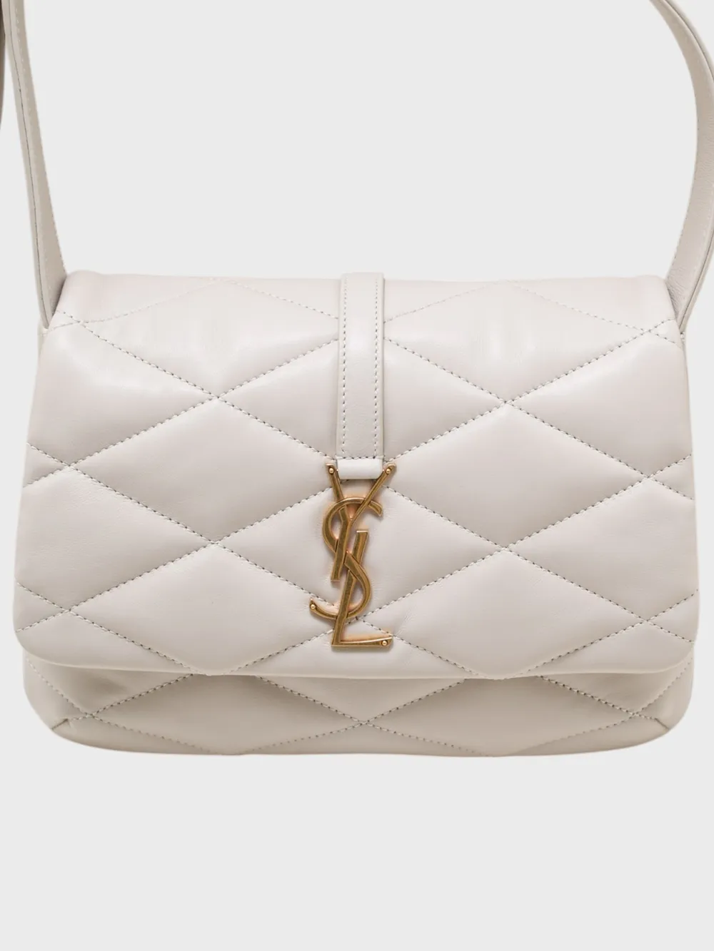 Сумка Saint Laurent (YSL) выполнена из качественной кожи белого цвета с прямым кроем и продуманным дизайном. Модель дополнена золотыми деталями, включая логотип "YSL", который придает ей современный и элегантный вид. Прямой силуэт и утонченные детали делают эту сумку универсальной, подходящей как для повседневного использования, так и для создания модных комбинаций.