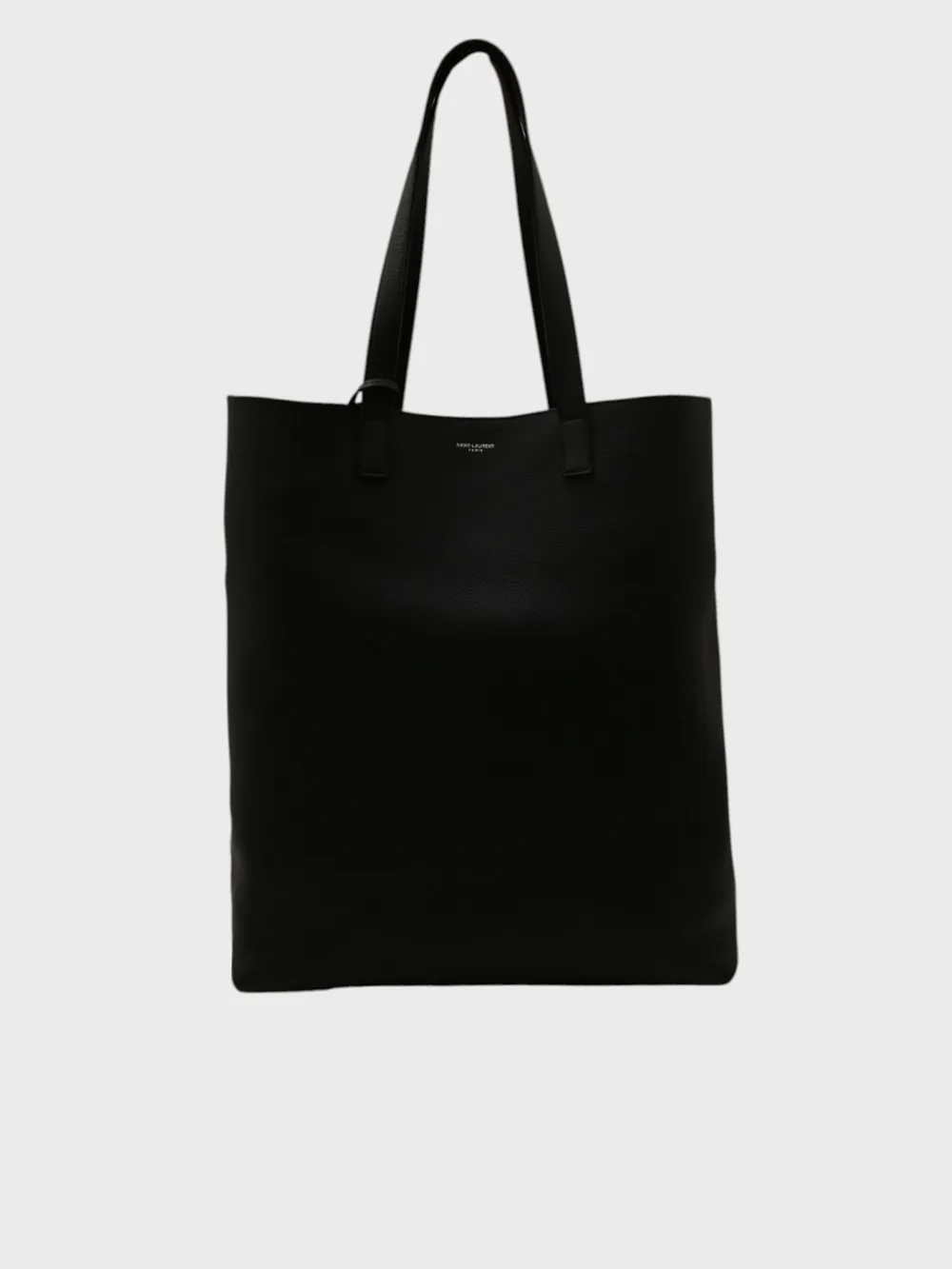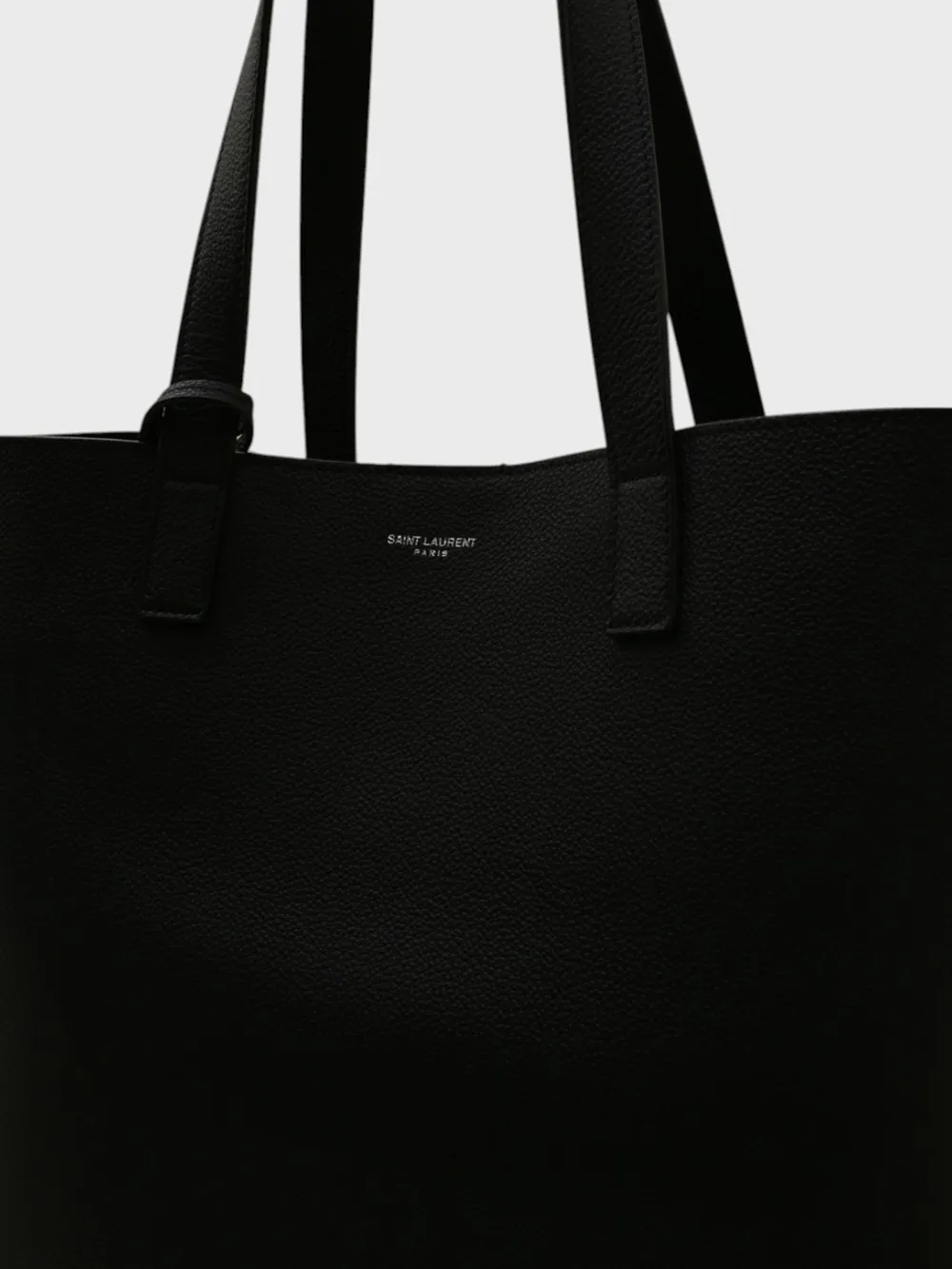 Сумка Saint Laurent выполнена из черной кожи с текстурой, напоминающей граненую поверхность. Модель имеет простую и элегантную форму с двумя короткими ручками для переноски через плечо или на руке. Застежка-ремешок с металлической фурнитурой обеспечивает безопасность содержимого. Простая форма и качественные материалы делают эту сумку универсальной для различных случаев использования, от повседневных прогулок до вечерних мероприятий. Черный цвет позволяет сочетать аксессуар с различными стилями одежды.