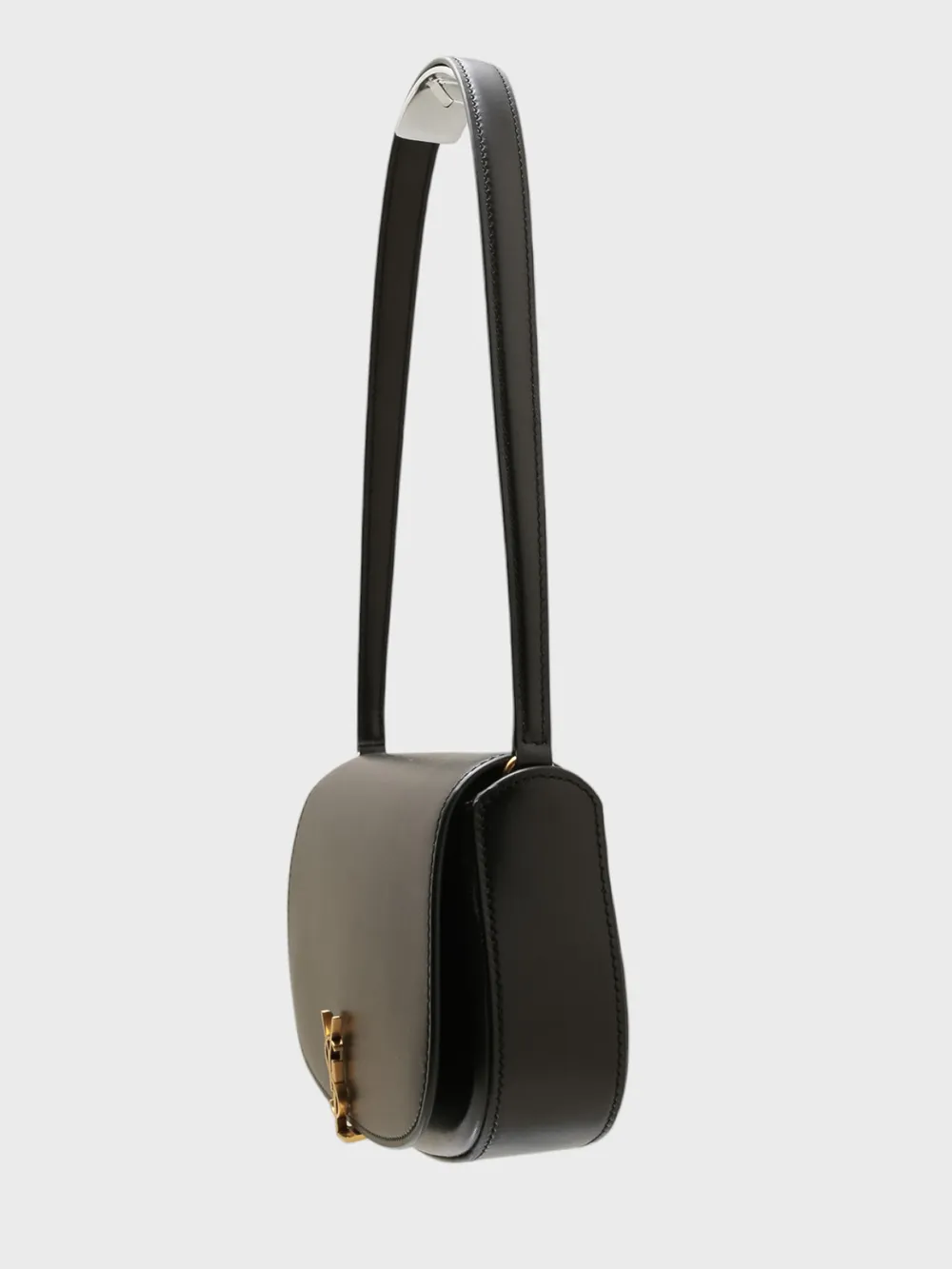 Сумка Saint Laurent выполнена из качественной черной кожи с гладкой фактурой и лаконичным дизайном. Модель дополнена короткой ручкой, металлическими деталями в золотистом цвете и фирменной эмблемой YSL на лицевой стороне. Простой силуэт и минималистичный стиль делают аксессуар универсальным для повседневного использования или вечерних выходов.
