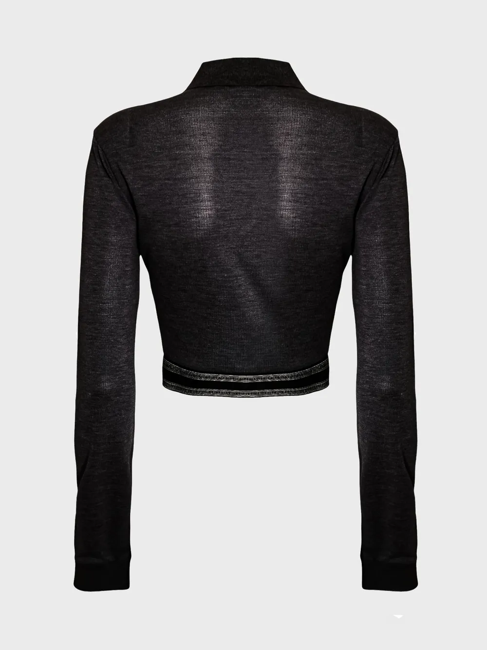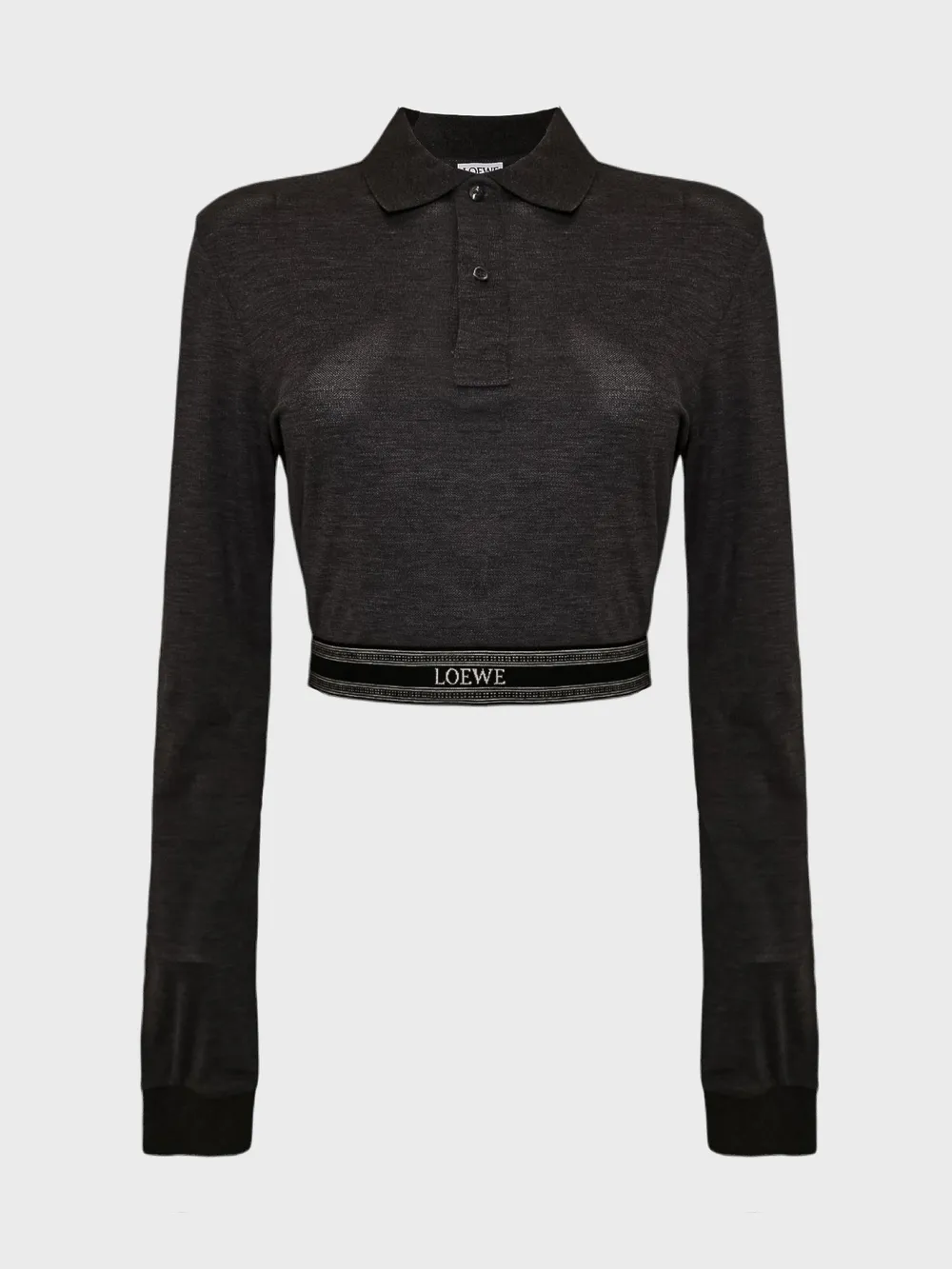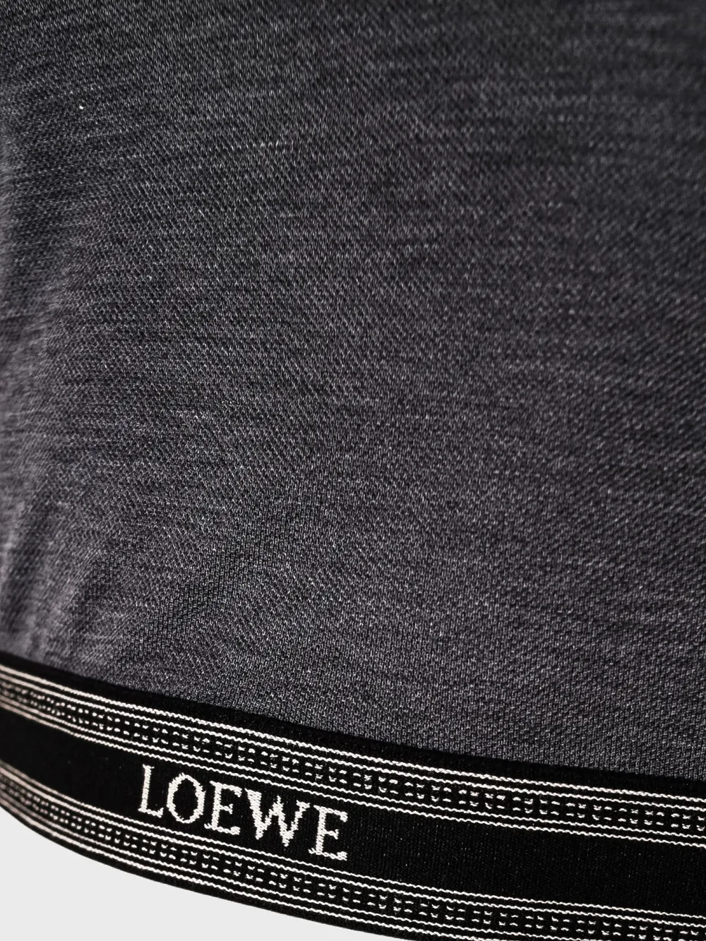 Рубашка Loewe выполнена из высококачественного темно-серого материала с фактурным плетением, обеспечивающим комфорт и стильный вид. Модель оснащена классическим воротником-поло, застежкой на пуговицы и контрастной отделкой с логотипом бренда "LOEWE" на талии. Детали, такие как аккуратные манжеты и карман на груди, подчеркивают внимание к деталям и превосходное качество исполнения. Универсальный дизайн позволяет сочетать рубашку как с повседневными, так и деловыми образами.