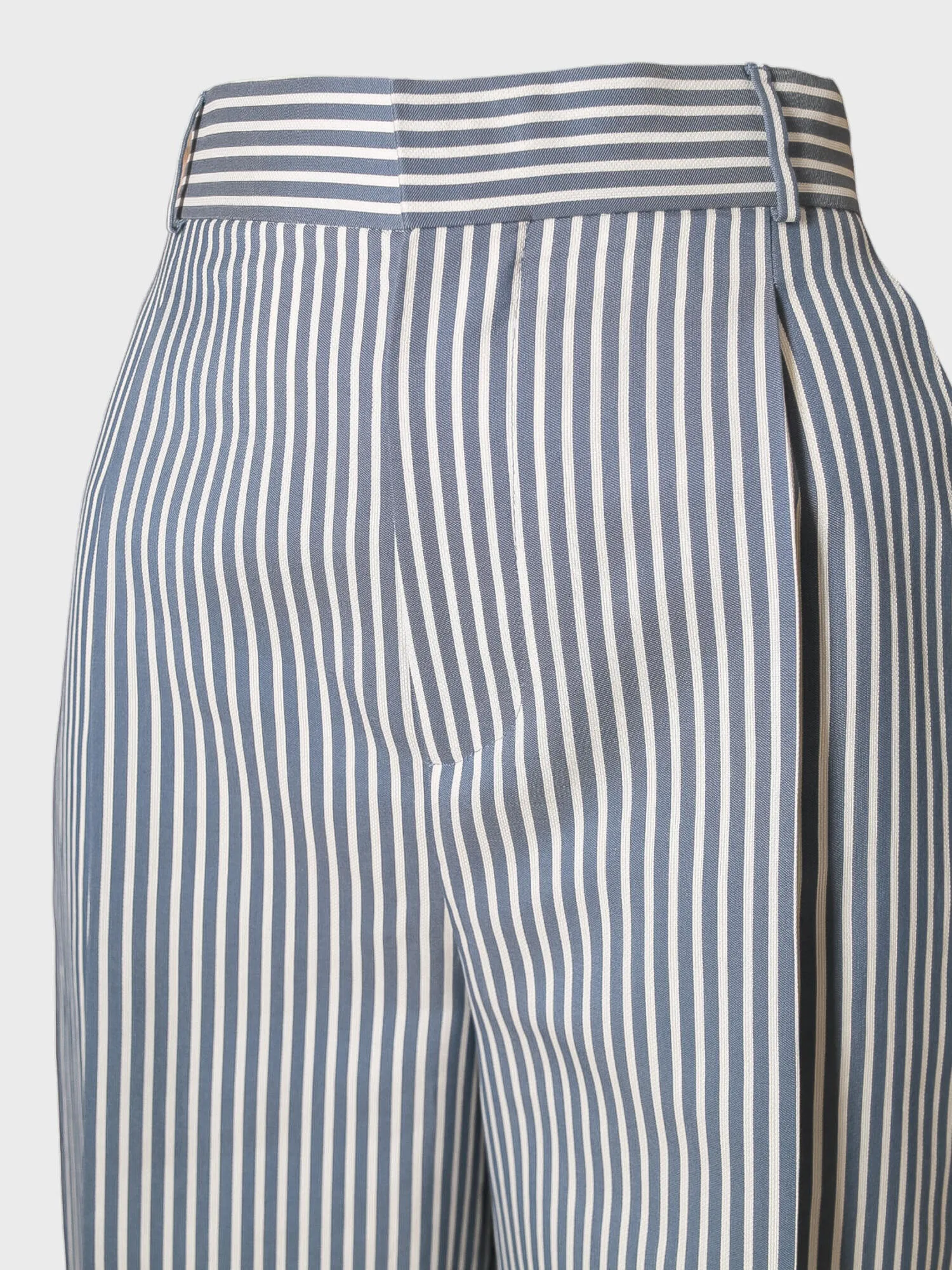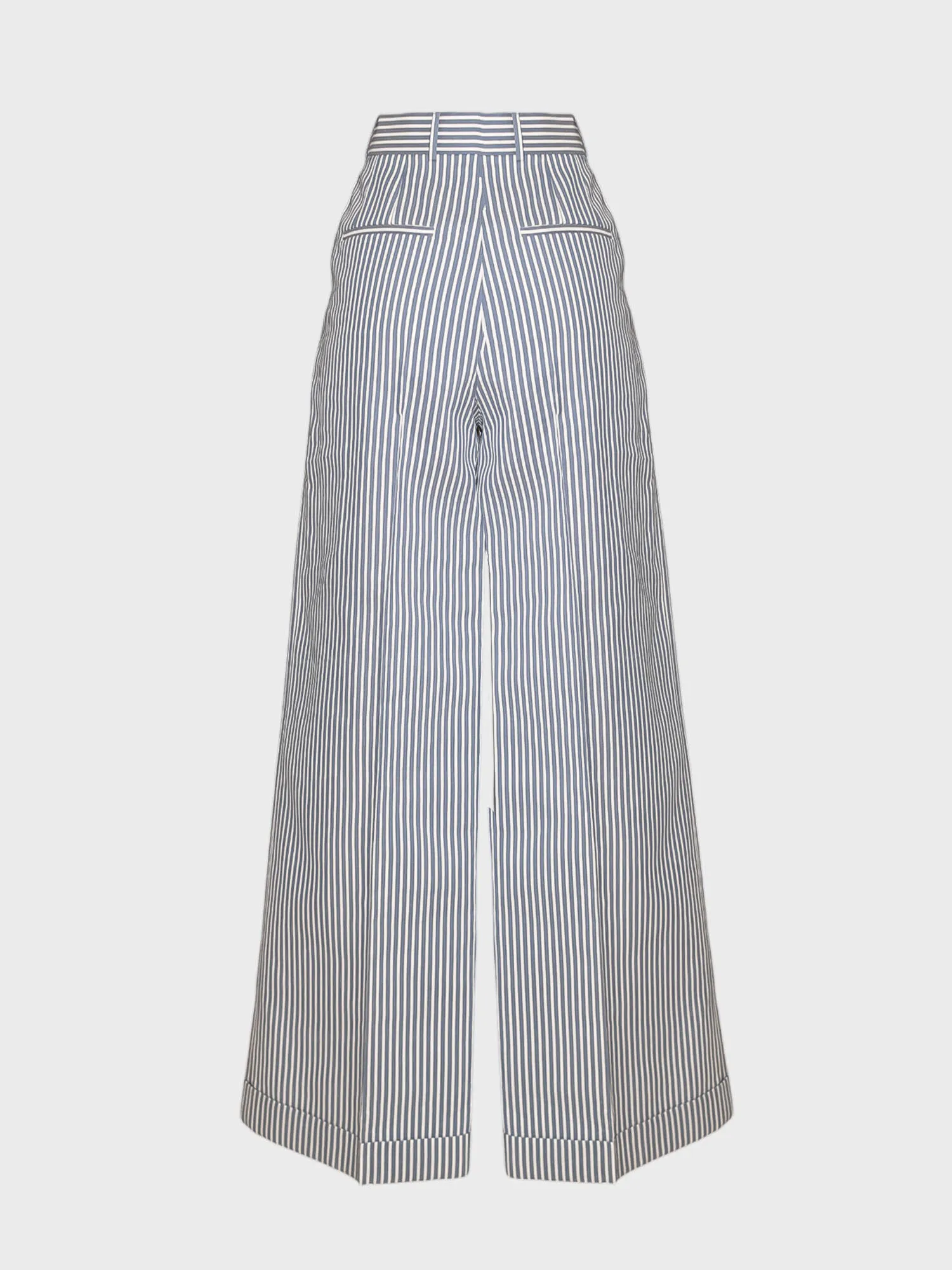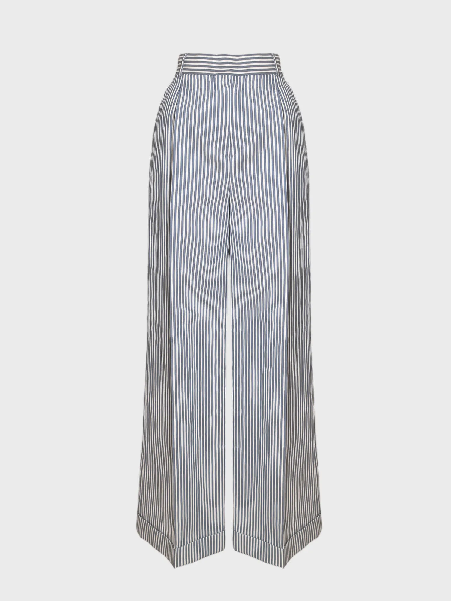Брюки Christian Dior выполнены из плотного черного материала с вертикальными светлыми полосами. Модель с высокой посадкой и прямым кроем дополнена классическими карманами спереди и застежкой на молнию сзади. Лаконичный дизайн и качественная отделка делают эти брюки универсальным элементом делового и повседневного гардероба.