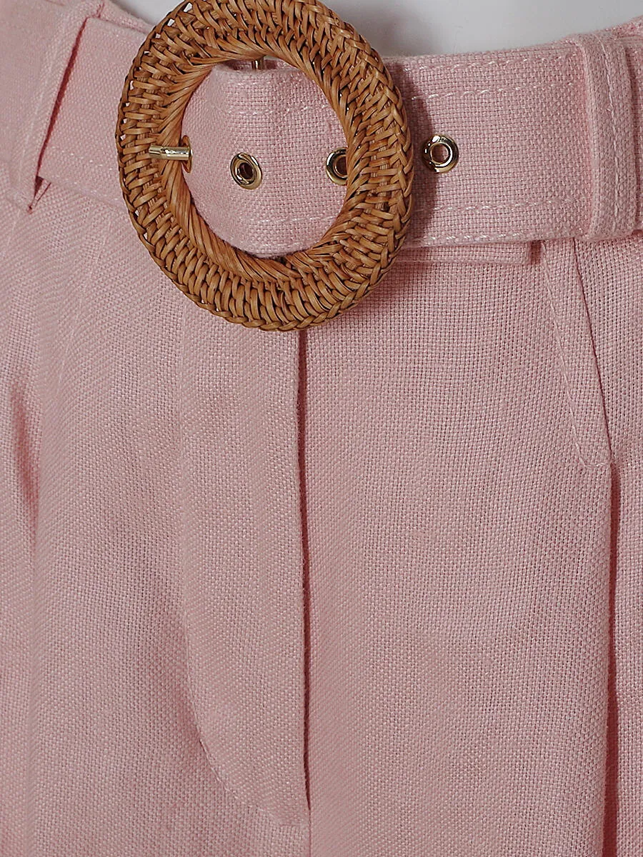 Брюки Zimmermann выполнены из льняной ткани нежно-розового цвета с широким кроем и высокой посадкой, сочетают комфорт и элегантность; декоративный плетёный ремень с круглой пряжкой подчёркивает талию — стильный элемент для летнего или повседневного образа. Ткань: 100% лен Подкладка кармана: 73% вискоза 27% шелк Откройте для себя мир элегантности и утончённости с коллекциями Zimmermann. Каждое изделие бренда — это воплощение женственности и стиля. Изысканные ткани, романтичные принты и идеальная посадка делают вещи Zimmermann идеальными для тех, кто ценит красоту и комфорт. Будь то летний комплект, вечернее платье или стильный купальник — продукция Zimmermann подчеркнёт вашу индивидуальность и создаст неповторимый образ на любой случай.