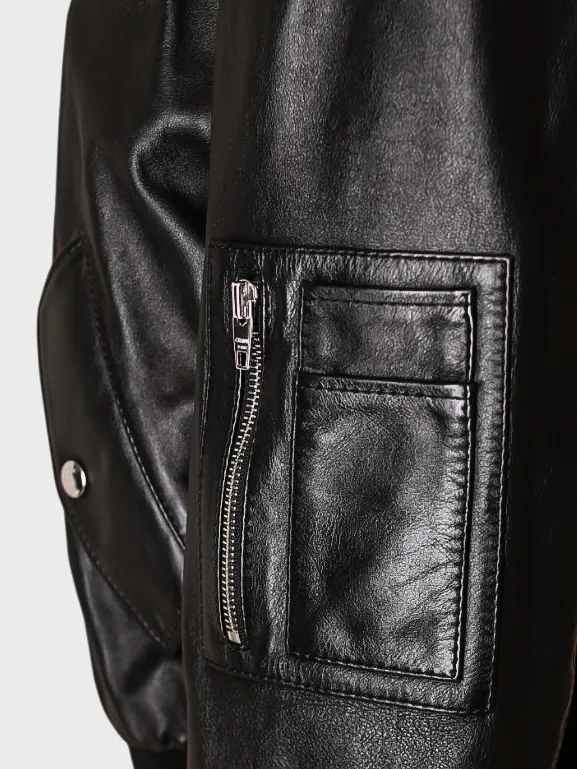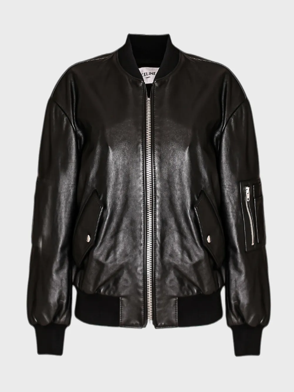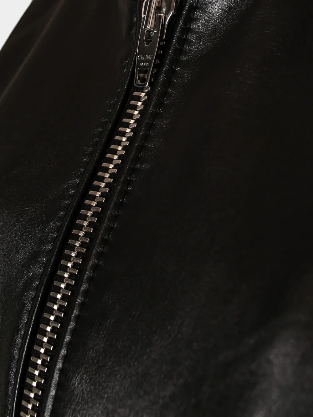 Куртка Celine выполнена из качественной натуральной кожи с матовым блеском, создавая эффектный и стильный внешний вид. Модель классического кроя дополнена прямой молнией на лицевой стороне и практичными карманами с металлическими застежками. Детали в виде контрастных панелей на рукавах добавляют современный акцент. Комфортная посадка и элегантный дизайн делают эту куртку универсальным предметом гардероба для повседневного и вечернего стиля.