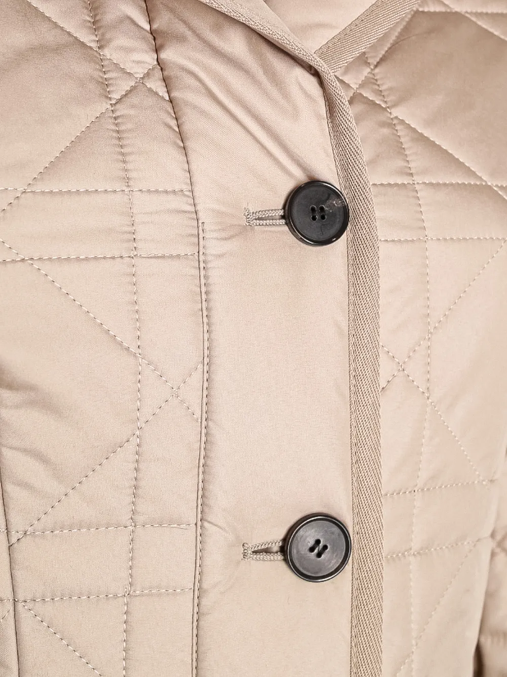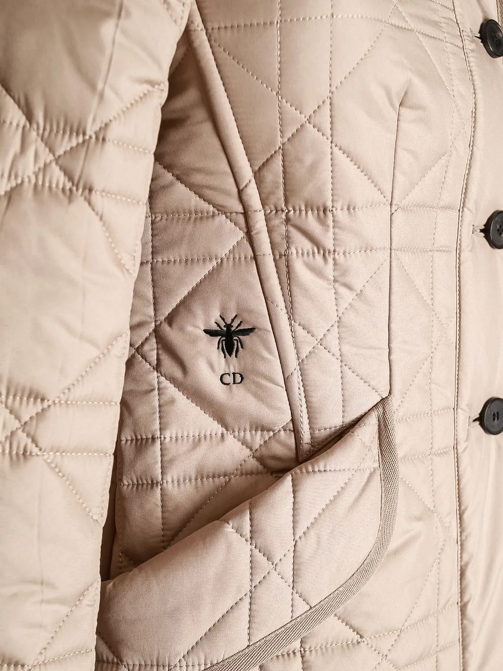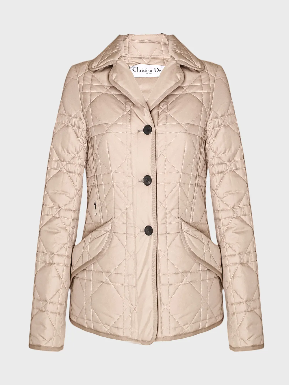 Куртка Christian Dior выполнена в нежно-розовом цвете из мягкого материала с квадратной стежкой. Модель дополнена отложным воротником, застежкой на кнопки и двумя боковыми карманами. Лаконичный дизайн и качественные материалы делают эту куртку универсальным вариантом для прохладных дней.